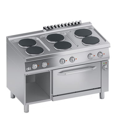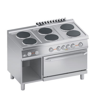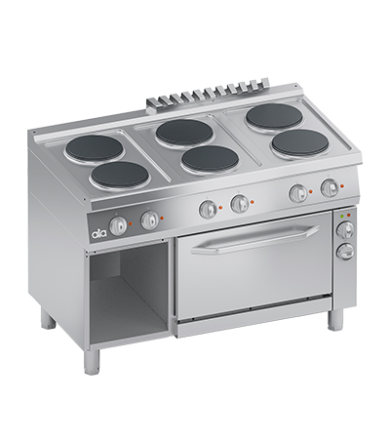 ELECTRIC RANGE 6 PLATES + ELECTRIC VENTILATED OVEN 1/1 GN + OPEN CABINET