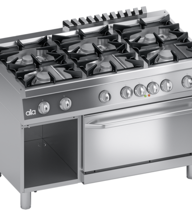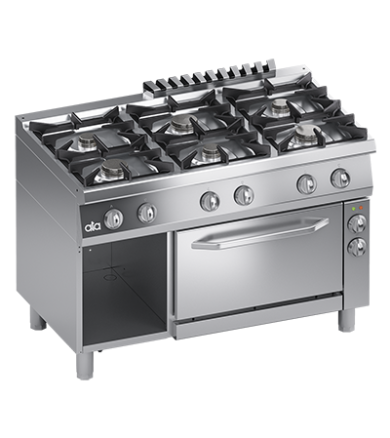 GAS RANGE 6 BURNERS + ELECTRIC VENTILATED OVEN 1/1 GN – SOLUTION LINE